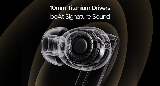 - boAt Airdopes 800 में Dolby Audio और 10mm Dynamic Titanium Drivers का मेल एक संतुलित साउंड प्रोफाइल देता है — गहरे बास, क्लियर वोकल्स और सटीक ट्रेबल्स के साथ।